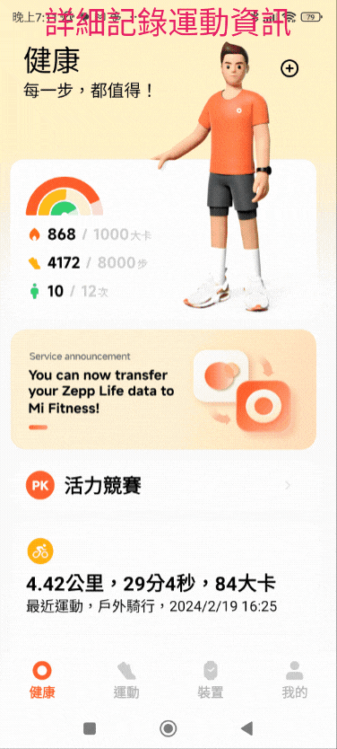 支援 超過50種運動模式 可因應所有運動情境需求!精準追蹤運動持續時間和卡路里消耗量 讓您運動感覺更加踏實!