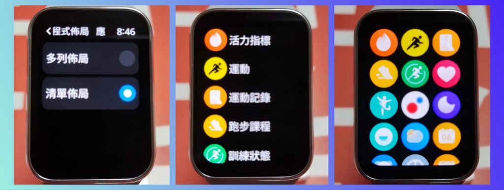 AMOLED 1.74 超大螢幕 健康資訊 來電 簡訊 社群訊息 一目了然!整合自訂常用功能 左右移屏(天氣 運動 心率 睡眠 血氧 播放音樂計時 碼表 ) 不需再到設定中尋找 方便快速!