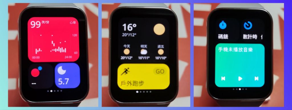 只需輕滑錶面 就能完全自訂四個畫面中的配置!結合運動追蹤 健康監控 天氣 行程 音樂等便利功能 在數秒間即可輕鬆切換!