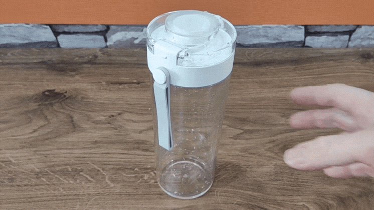 將蛋白粉或其他粉狀飲料倒入水瓶 裝上搖搖瓶攪拌工具 關上蓋子 然後搖晃瓶身!您的 DIY 飲品已大功告成!