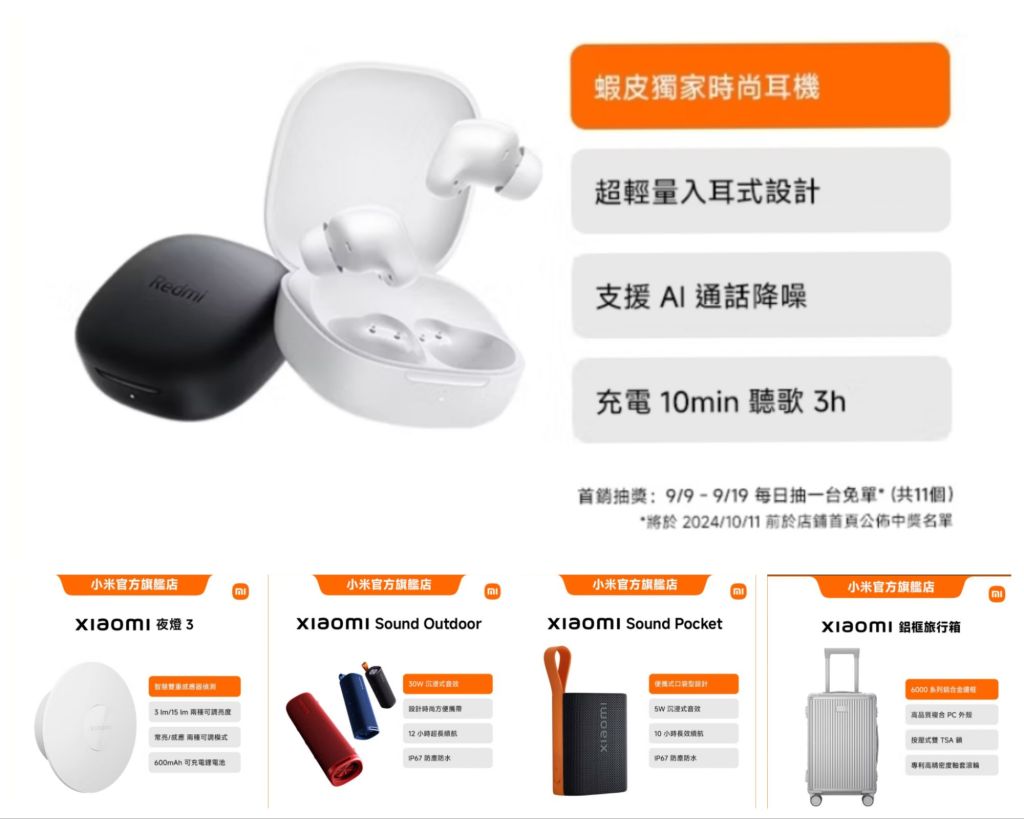 9/9新上市許多新品有興趣可參考蝦皮「小米官方旗艦店」