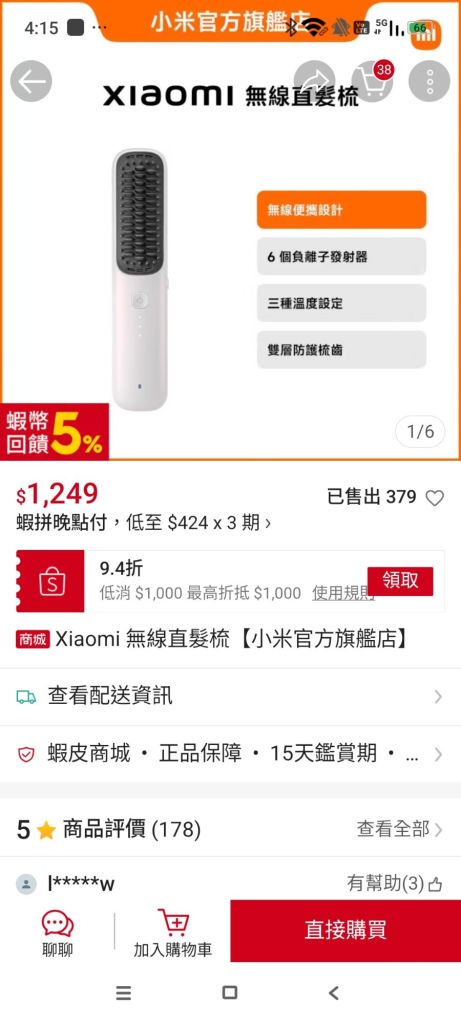 對於負離子直髮梳 需求的米粉朋友滿推薦使用 而且價格實惠CP值高比它牌便宜!想購入的朋友下面商品連結請參考 選購!